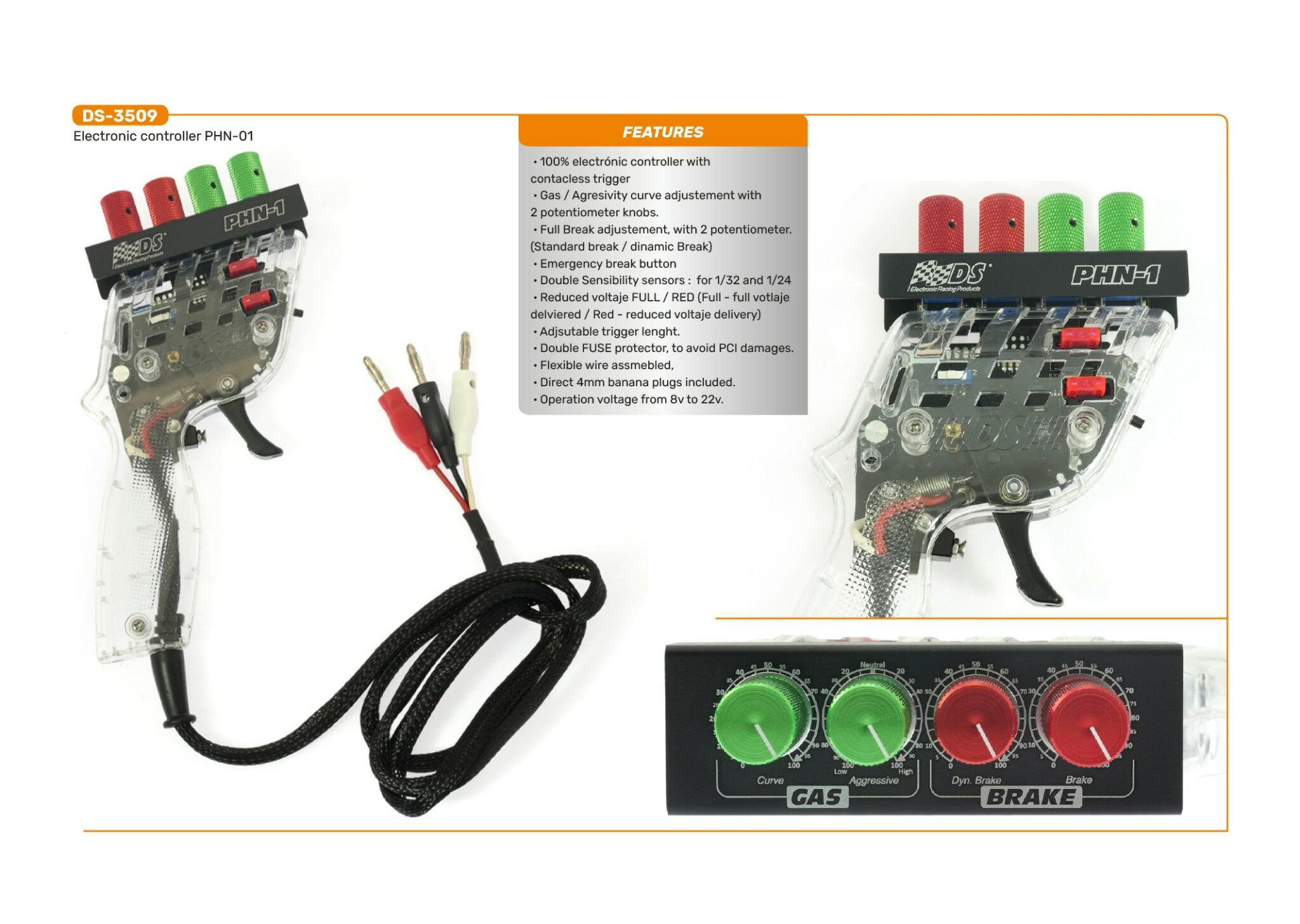 DS-3509 Electronic Controller PHN-01 from DS Electronic Racing Products (a subsidiary of Scaleauto).ย Features: