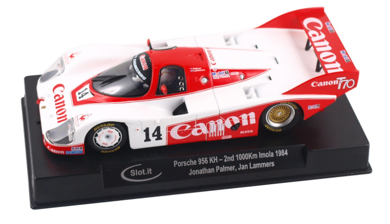 Porsche 956 KH – #14 2nd 1000 km Imola 1984 livery as driven by the amazing team of J.Palmer, J.Lammer 1000 km Imola 1984 race in 1984. Slot it has been building Premium Cars for over 35 years now. Their attention to detail and workmanship and the assortment of aftermarket spares for tuning for these cars makes it the go to for next level tuning and ultimately a better experience racing. These cars are analog but can be converted with Slot it SP-43 for Carrera or Slot it oxygen or any other digital chips from any other manufacturers to convert them to Digital. Slot it has a history of winning World Championships with that experience going back into all their product line to make a superior product. We combine shipping for cars and small parts. Just use local pick up for the second item in the shipping calculator. This is good for one additional car, if you Purchase more there is a Flat rate of $5 per item increase in shipping cost.