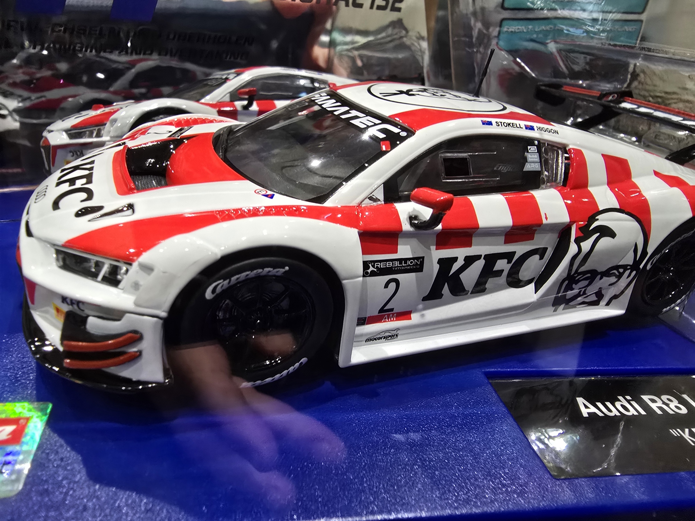 Available in 1/32 and 1/24 Experience the thrill of the Carrera Digital Audi R8 LMS GT3 evo II "KFC Racing, No.2" a 1:32 scale slot car with working front and rear lights, now available at Lightek Slots—North America’s premier destination for premium slot cars. This high-performance model, inspired by the KFC Racing Team features digital coding for multi-car racing action and authentic detailing for collectors. Perfect for racing enthusiasts, it’s compatible with Carrera Digital and Evolution tracks and delivers precision control. Shop Lightek Slots for an exclusive selection of top-tier slot cars, including this standout Audi R8 GT3, with fast shipping across North America. Elevate your racing setup Available on Pre-order now from Lightek Slots. Or Call us to Combine shipping or find your next Slot car Pre-Order. Whether you're competing against friends or perfecting your skills in solo mode racing against a digital ghost car.